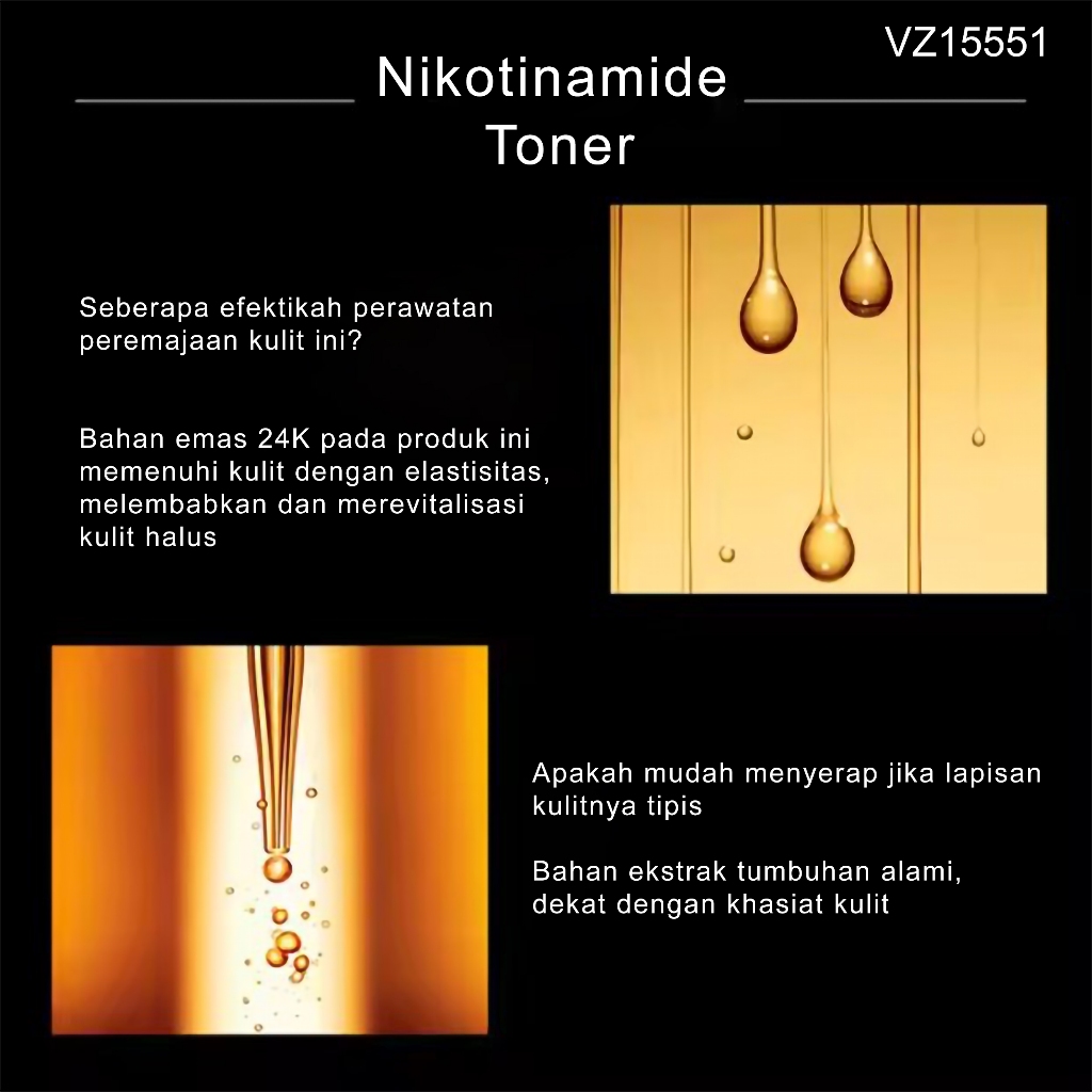 [BPOM] - VEZE Toner Wajah 24K Nikotinamide kuningan mengkilap Melembutkan dan Menghaluskan Kulit Wajah 300ml