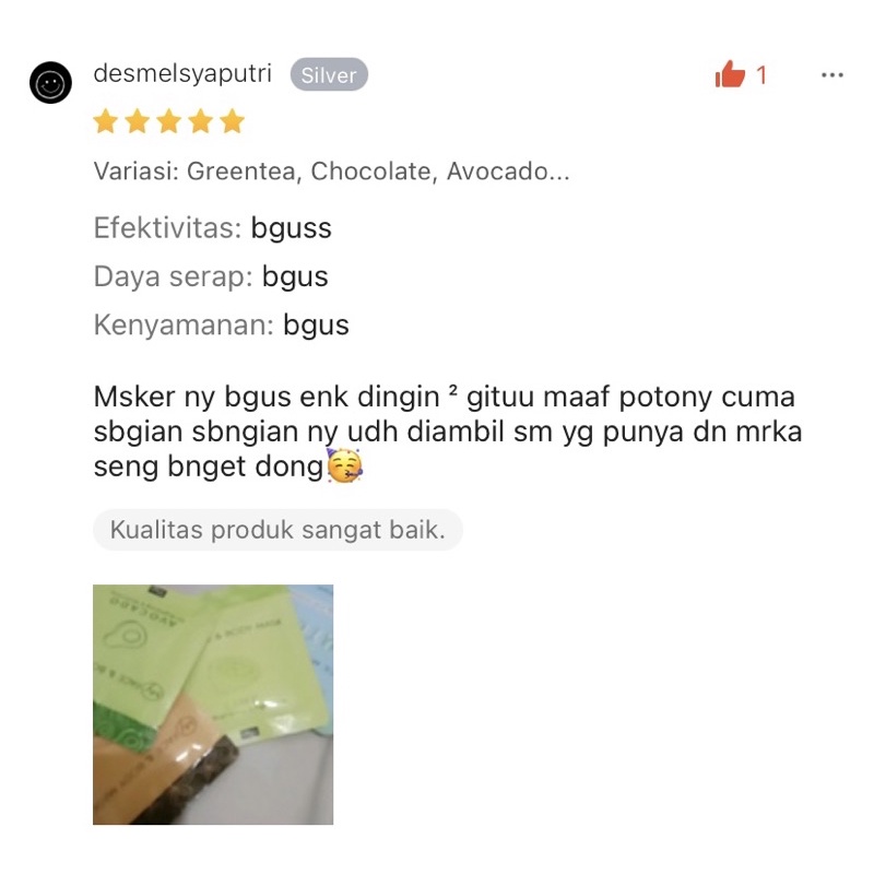Masker Organik BPOM Claymask 10gr Dengan Avocado & Green Tea