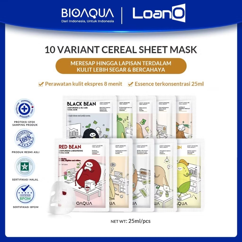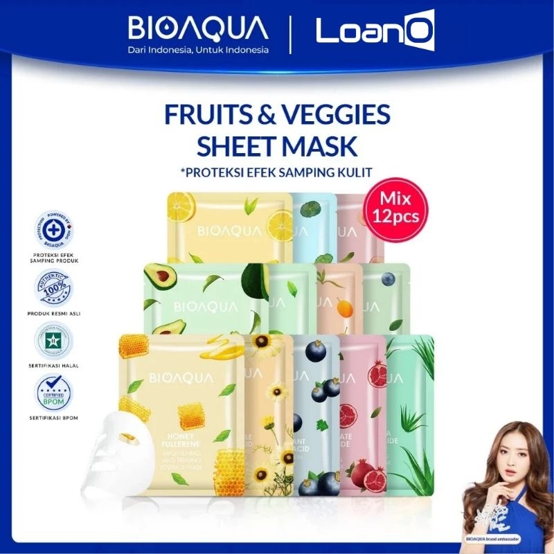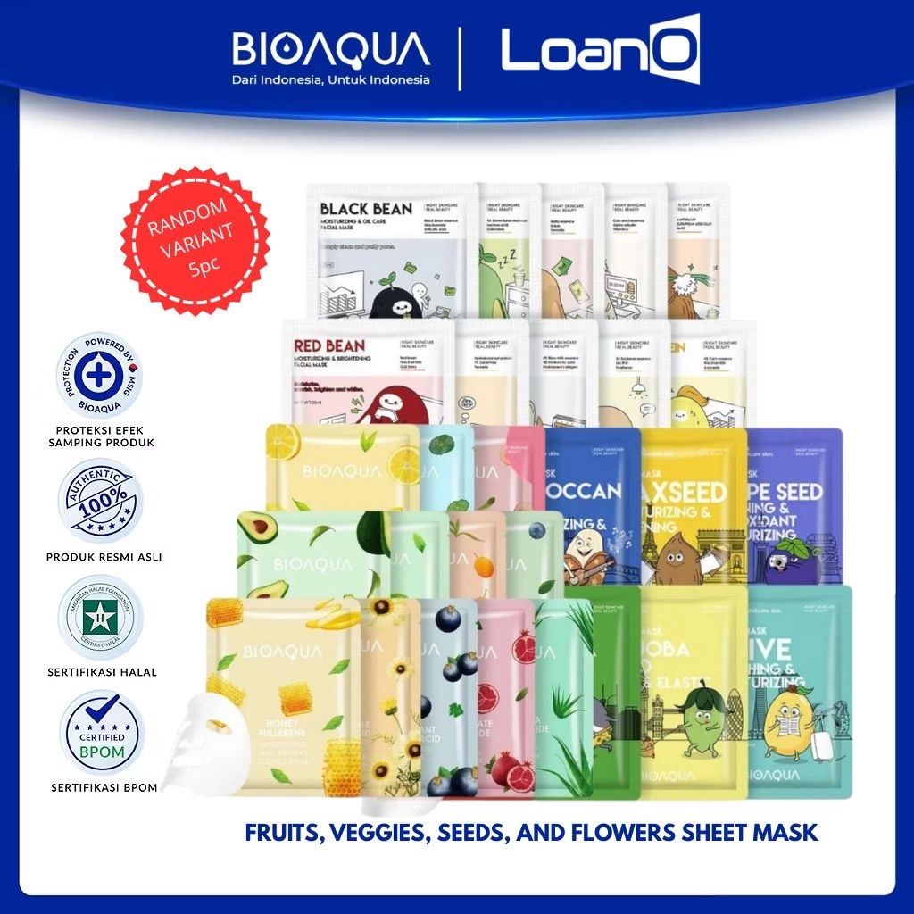 LOANO (PAKET ISI 5 pcs) Exp 2026 s/d 2028 BIOAQUA Fruits Veggies Seeds Flower Sheet Mask Masker wajah topeng buah sayur biji buah dan cereal