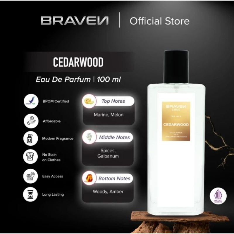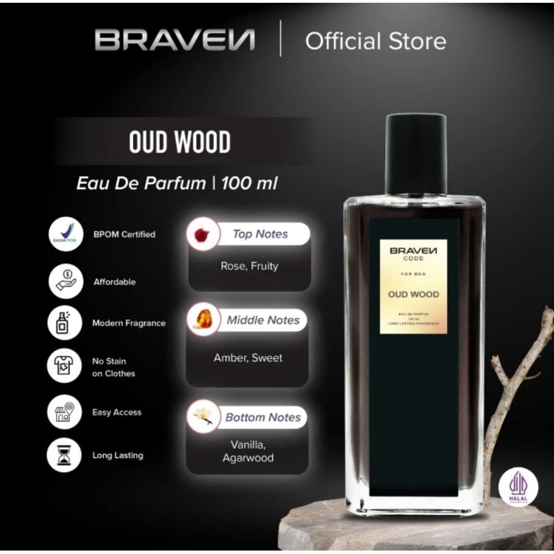 Braven 100 ml parfum pria wangi tahan lama 8 jam- Oud Wood - Urban - cedarwood