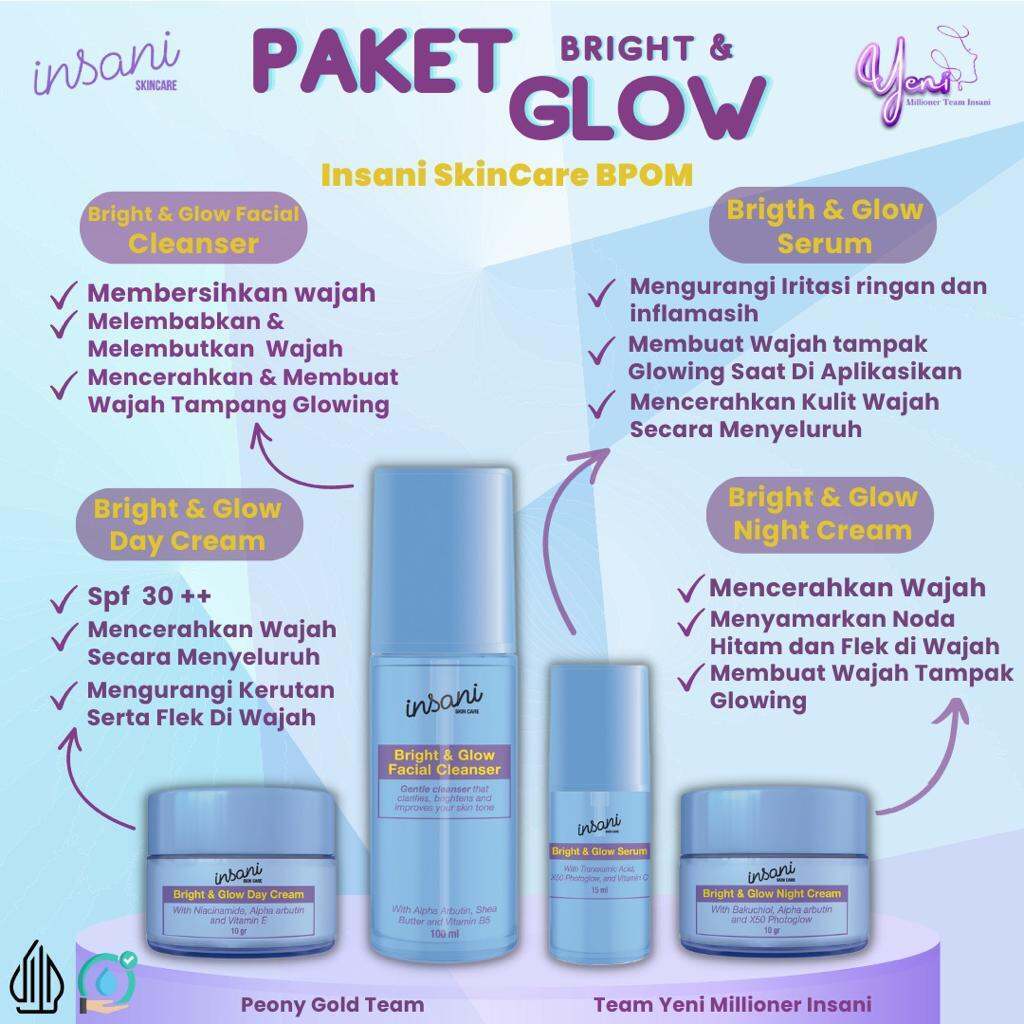 INSANI SKINCARE PAKET BRIGHT & GLOW BPOM mencerahkan kulit wajah ( FREE GIFT )