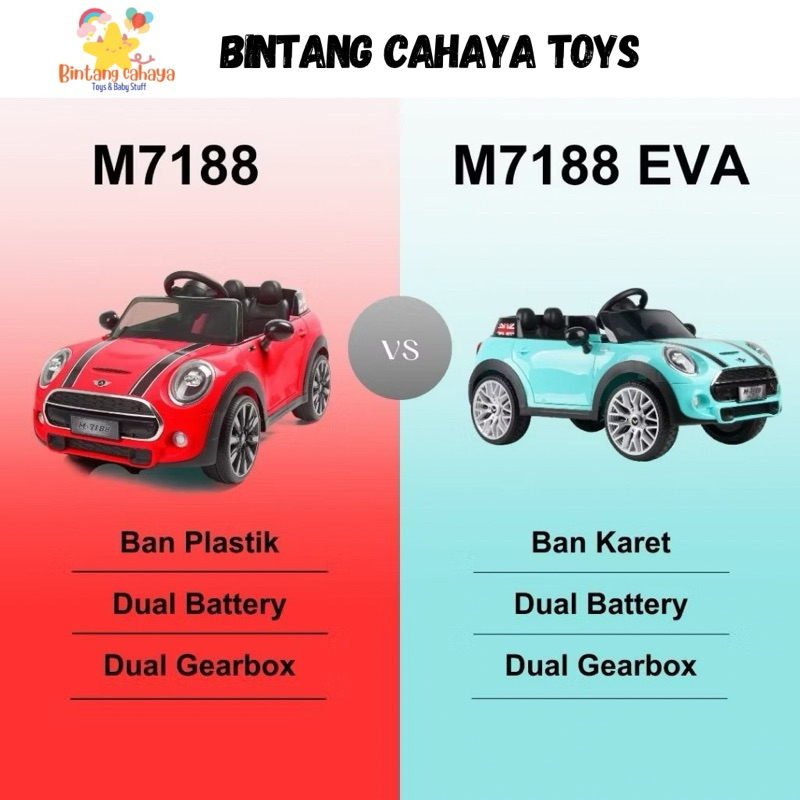 (FREE KARPET ALAS KAKI) Mobil aki anak mini cooper PMB M7188 PM 7612 mortein dual gear cas an listrik