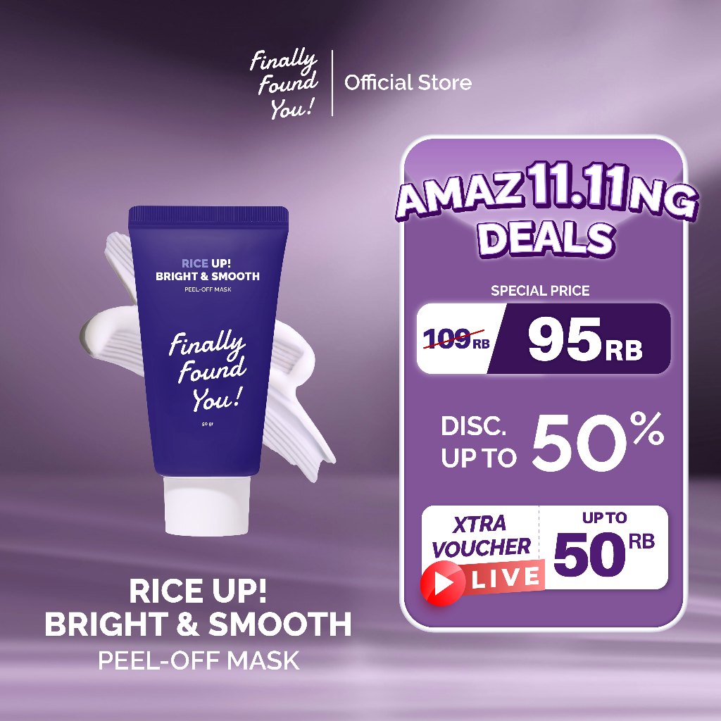 Finally Found You RICE UP Bright & Smooth PEEL-OFF MASK 50gr - Menghidrasi dan Mencerahkan Wajah