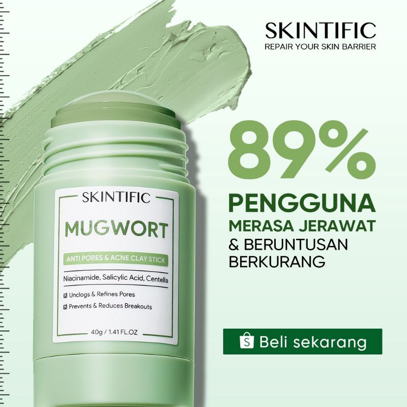 [ Stock] SKINTIFIC Mugwort Clay Stick Cleansing Clay Mask 40g Anti Pores & Acne Mud Fal Mask Masker Wajah Wash Cleansing Masker Wajahoff Mask Green Mask Stick Alaska Volcano Clay