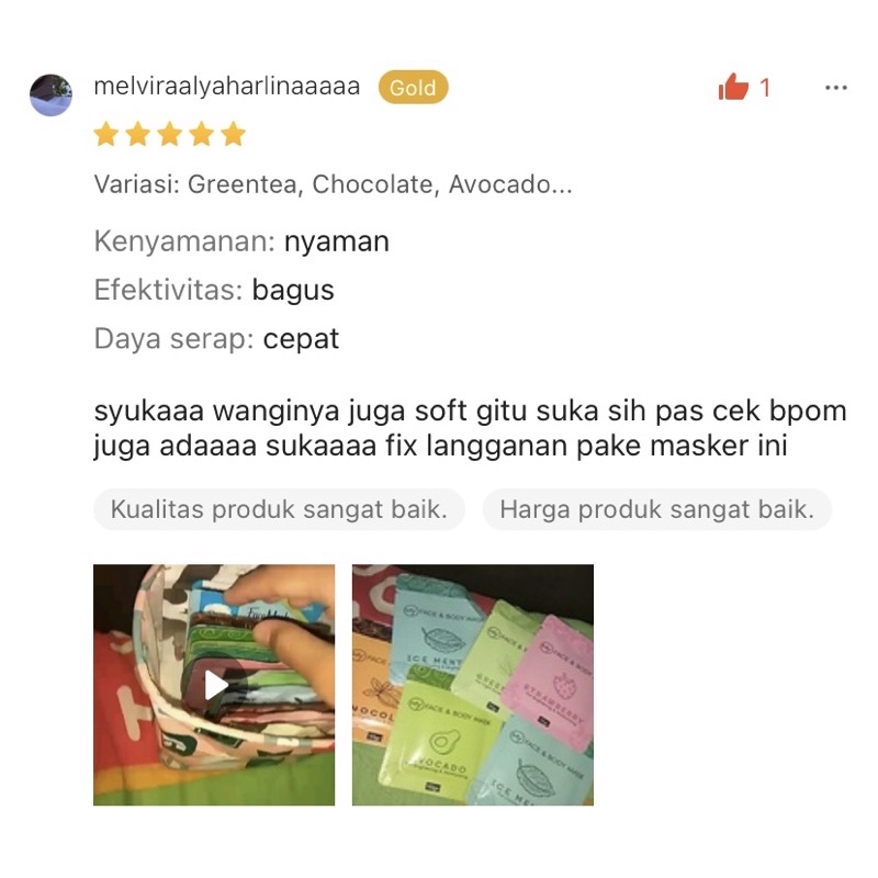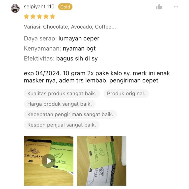 Masker Organik BPOM Claymask 10gr Dengan Avocado & Green Tea