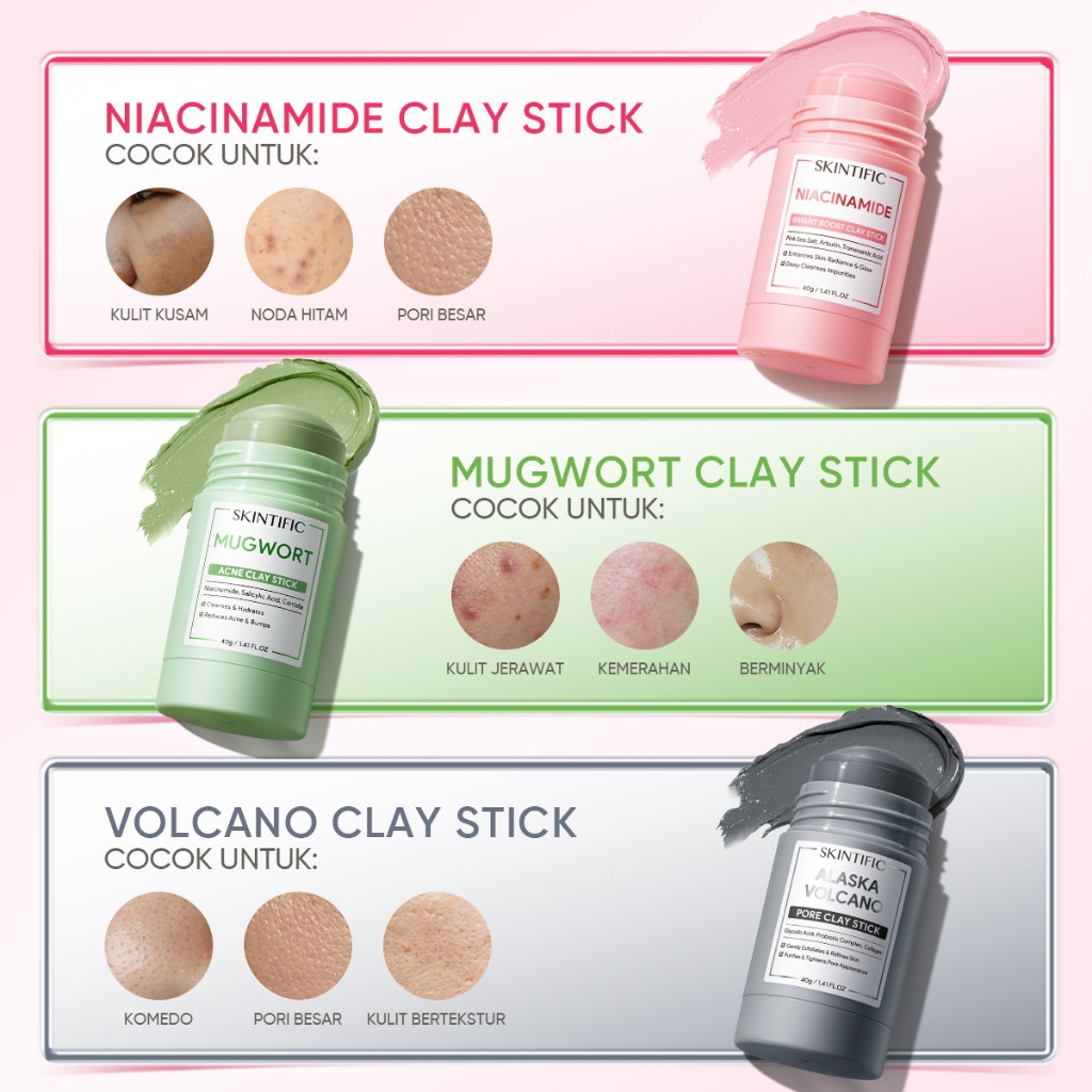 [SKINTIFIC Resmi] - Clay Mask Stick | Mugwort Acne Calming & Volcano Pori & Ninamide Brightening