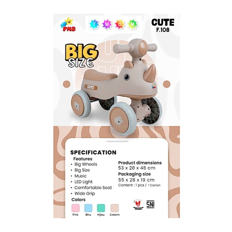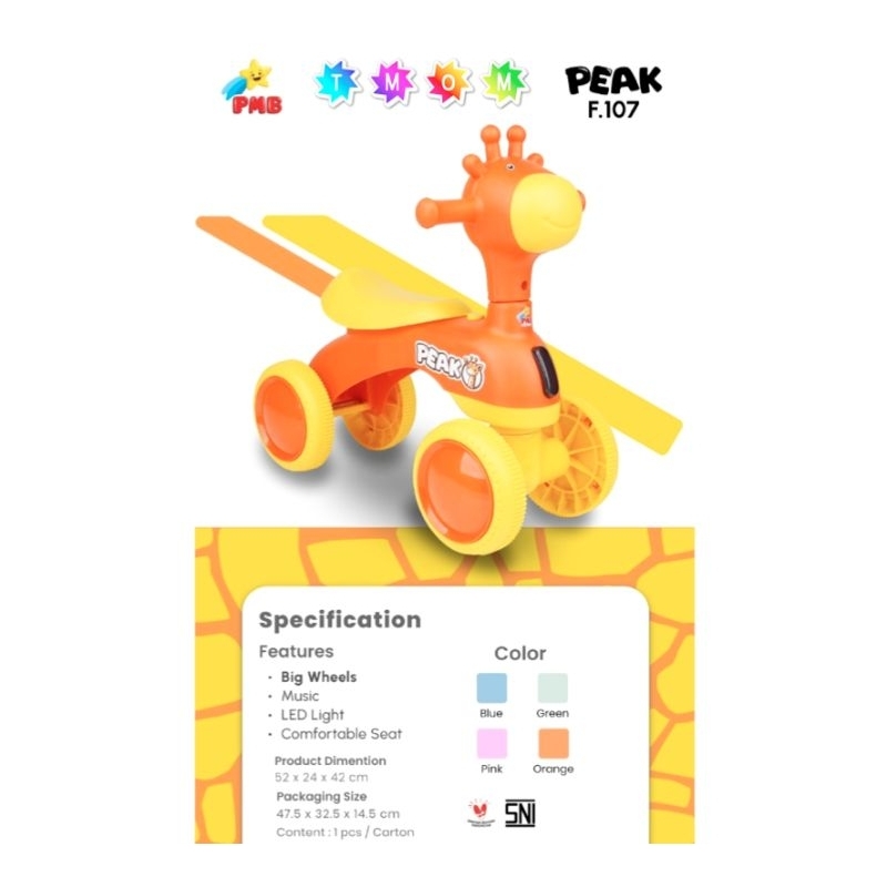 Mainan Animal Ride On Tolocar Balance Bike Mobil Dorong Dayung Anak PMB Nyra F-106 F 106 F106 PMB Peak Jerapah F-107 F 1