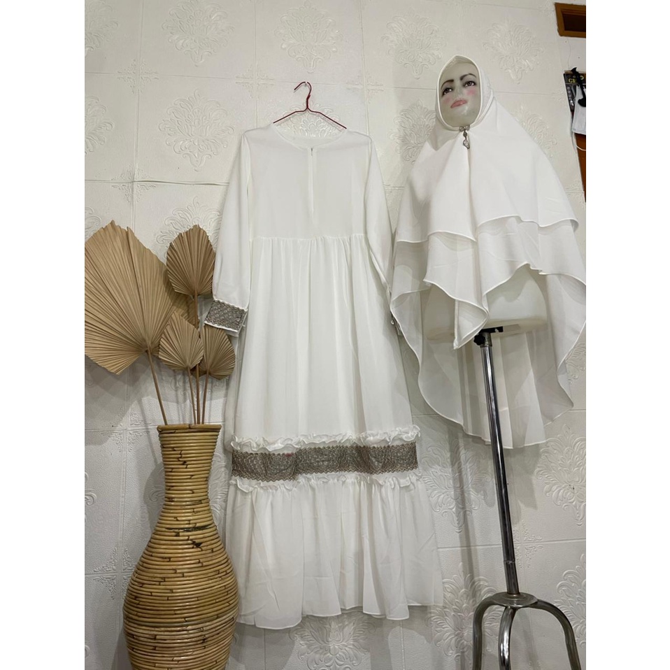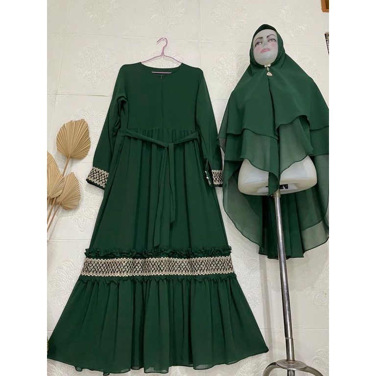 Gamis Syari Ceruty Mix Renda Depan dan Tangan | Gamis Syari Busui | Gamis Set Khimar Terbaru