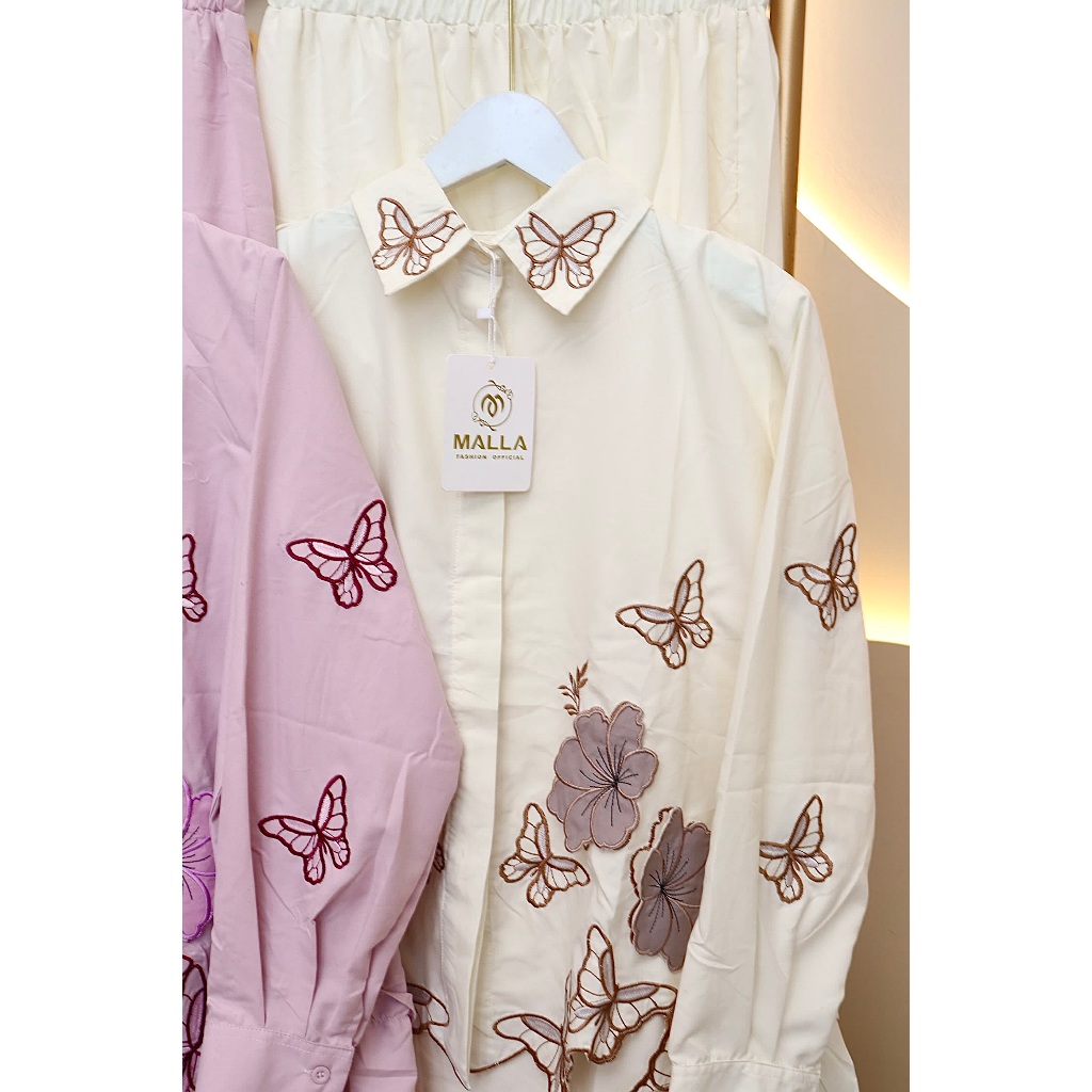MADAMEMALLA Gweny PO 323 Setelan Rok Umpak Katun Bordir Timbul Kupu Kupu Floral Fashion Muslim