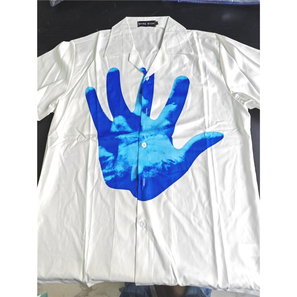 Dark Icon Hand Printing Kemeja Pria Lengan Pendek Motif Vintage Shirts Cowok Baju Gambar Tangab