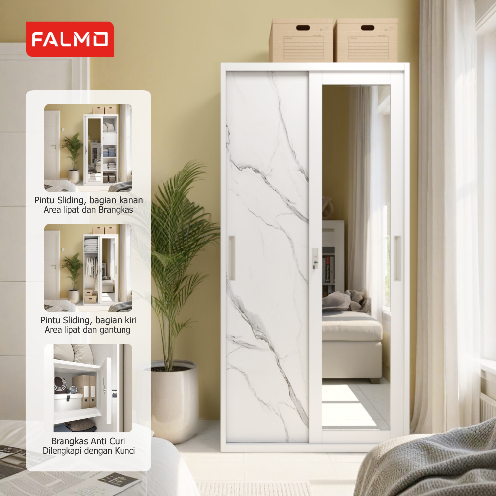 Lemari Pakaian 2 Pintu/ 90cm 1 gantungan Lemari Sliding Full Motif Gratis Ongkir