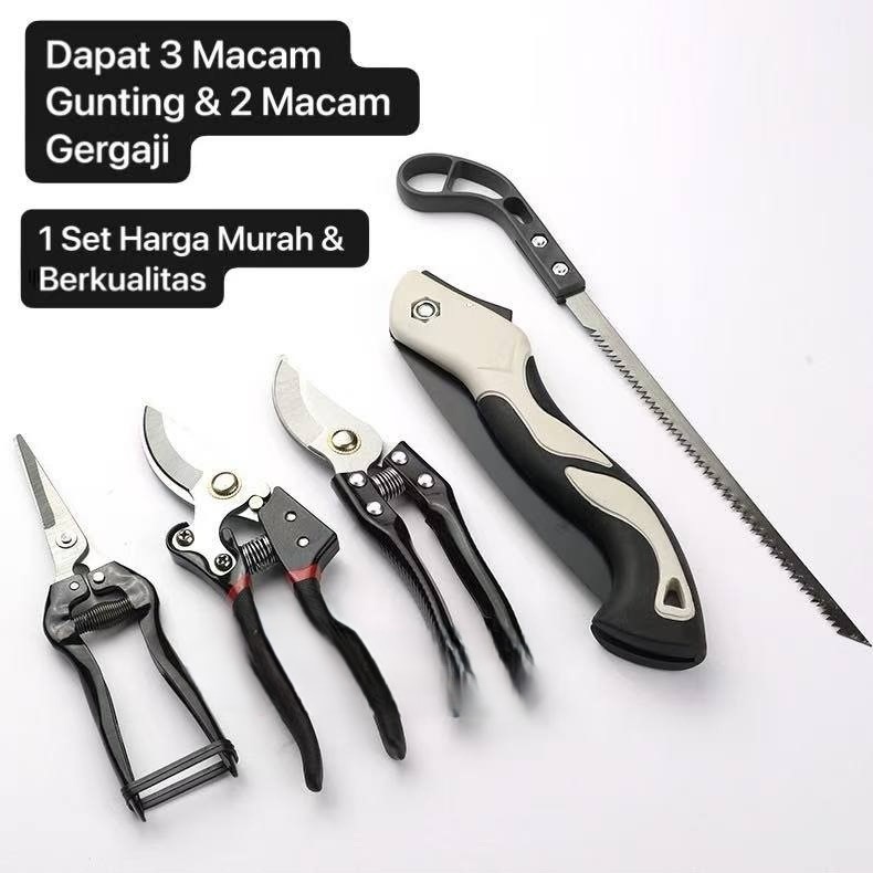 KBN-015 Alat Berkebun 1 Set isi 5pcs Dapat Gunting Ranting dan Gergaji Dahan Ranting Pohon Tebal Kebun
