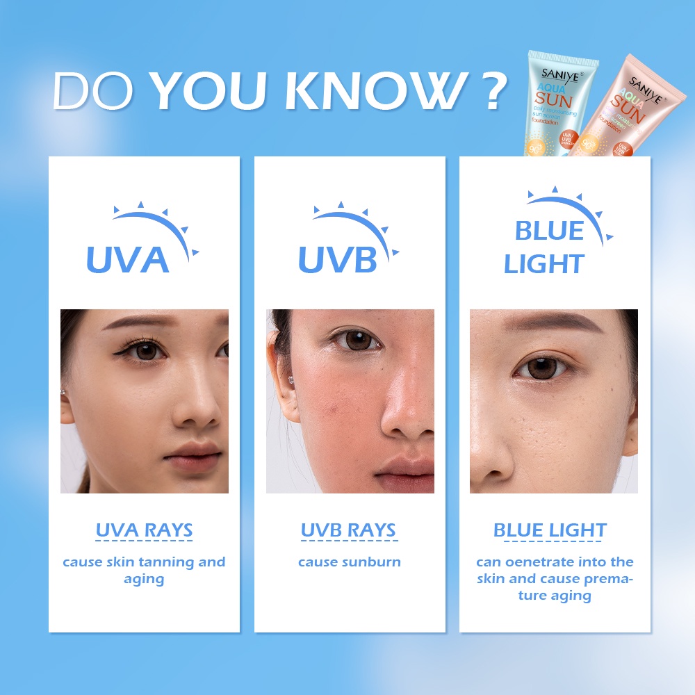 SANIYE Wajah Sunscreen SPF90 Waterproof Sunblock Foundation Pelembab 65ML Kosmetik R1190