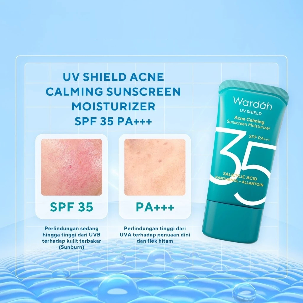 Wardah UV Shield Acne Calming Sunscreen Moisturizer SPF 35 PA+++ untuk komedo, dan ber-jerawat