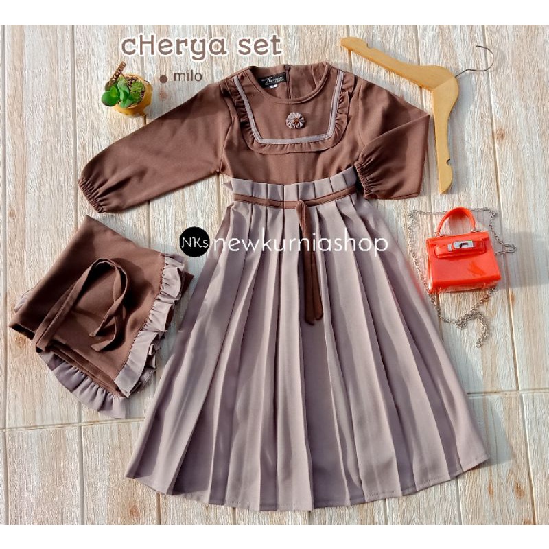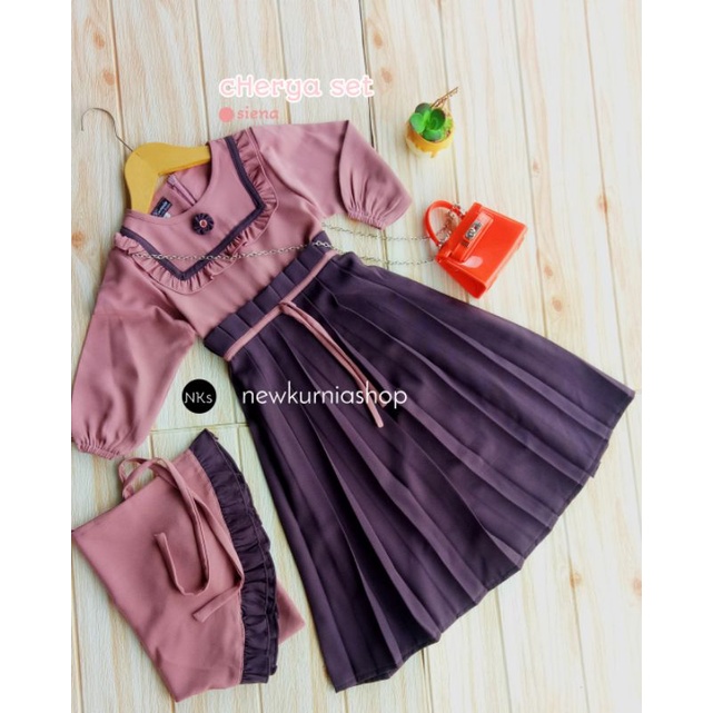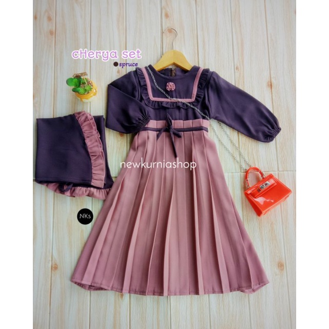 Gamis muslim anak perempuan set hijab Cherya 1 sampai 15 tahun