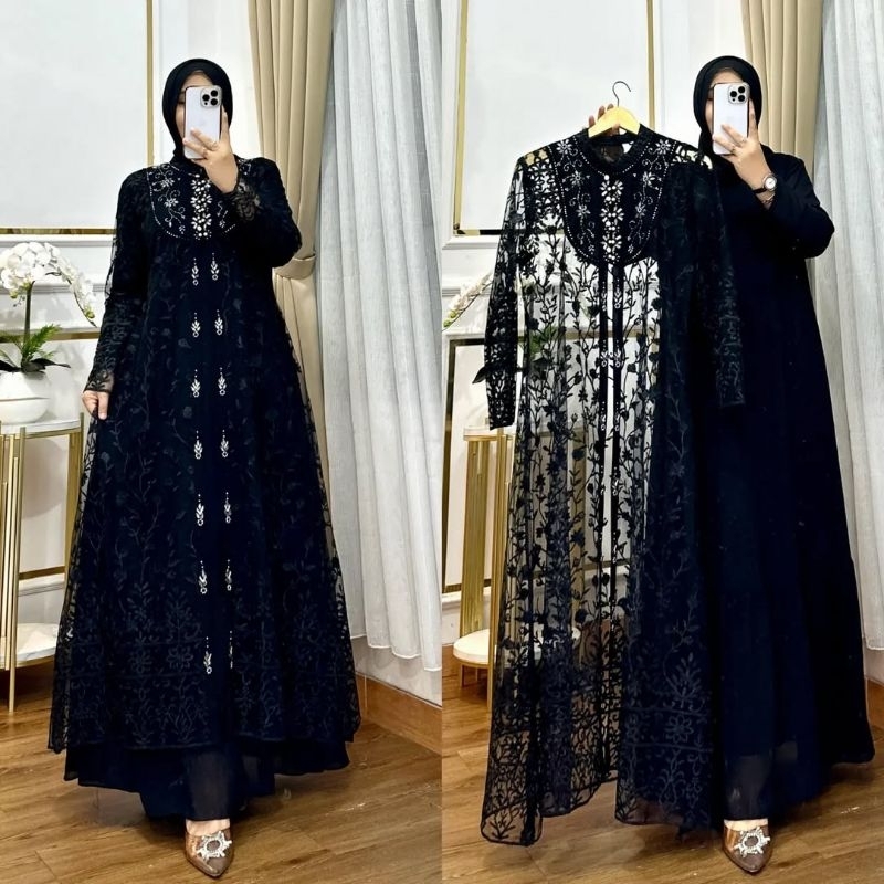 GAMIS SET OUTHER TERPISAH FULL BRUKAT PAYET // Gamis Burgundy Asmara Set Dress mewah elegan