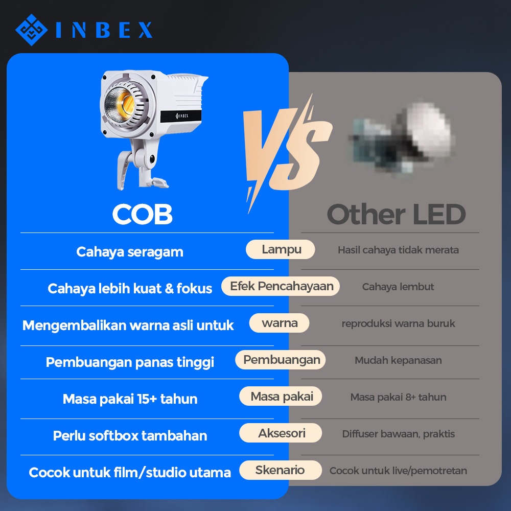 INBEX IL-110S COB Video Light Daylight CRI 90 Untuk Studio Potoafi Video Vlog Dan Video Luar Ruangan