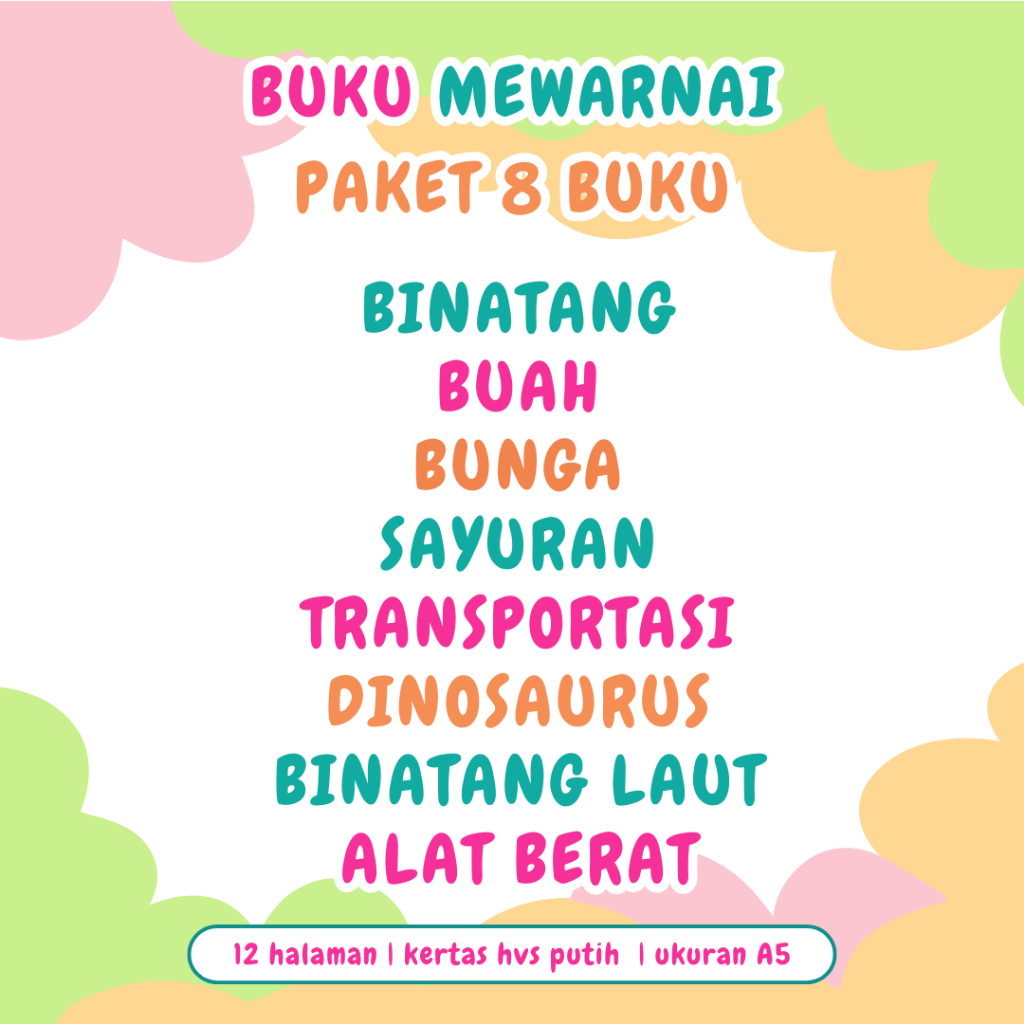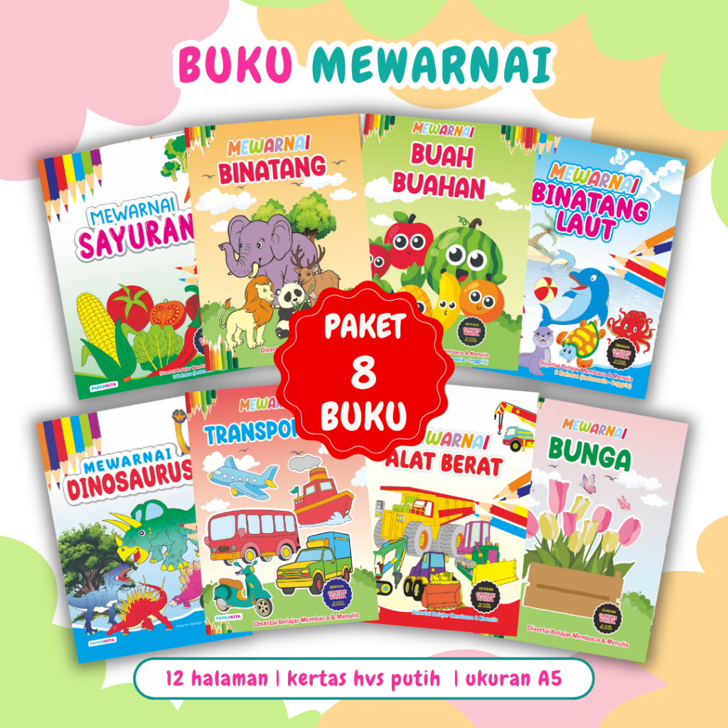Buku Mewarnai Paket 8 Buku Mewarnai Anak Coloring Book Edukasi Belajar dan Aktivitas Paud TK Usia DIni