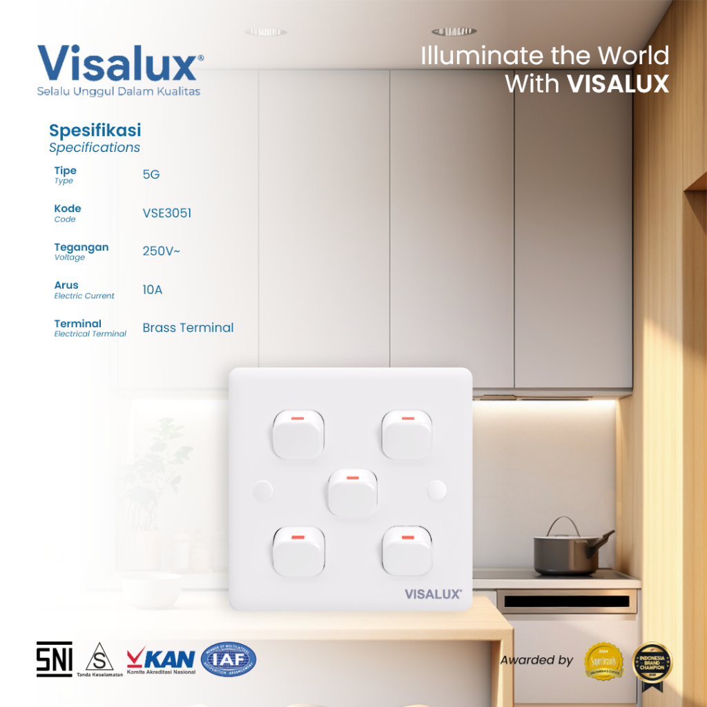Visalux Saklar PVC E-Series - 1G 2G 3G 4G 5G White / Sakelar Premium