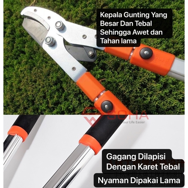 TK-23 Gunting Pemotong Dahan Ranting Pohon Bahan Besi Telescopic Kuat Memotong Dahan Pohon Anti Karat Gagang Panja
