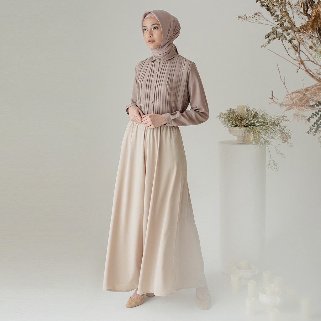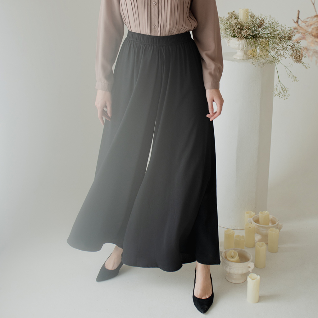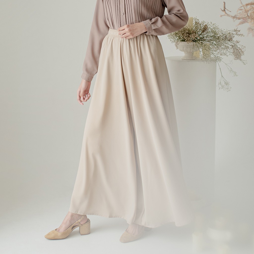 Sahara by Aska Label - Celana kulot wanita lebar pinggang karet, warna Hitam, Offwhite, Navy, Grey, Seafoam, Sky Blue,