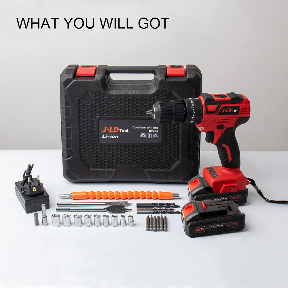JLD 13mm mesin bor impact baterai brushless bor cas murah 2baterai 48V bor tangan baterai bor impact baterai jld bor bes