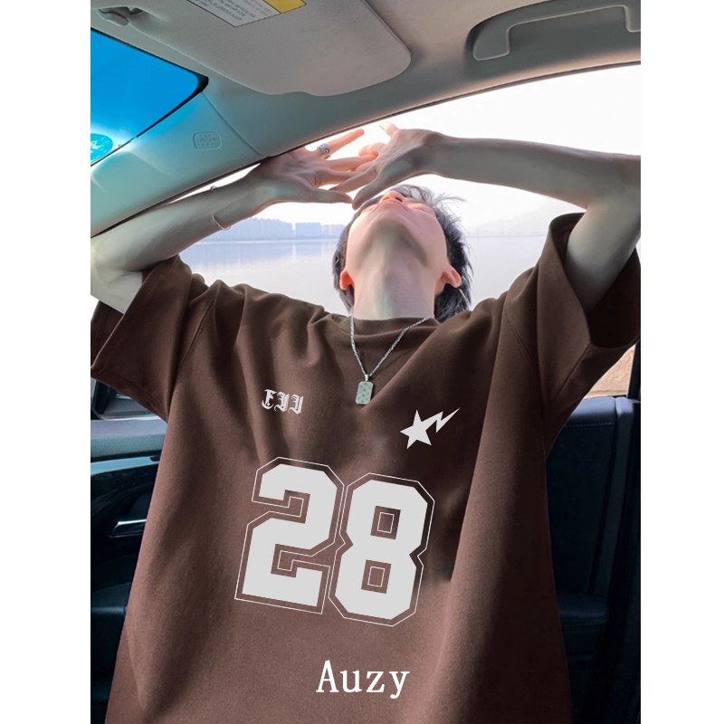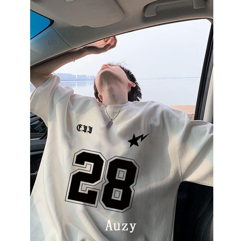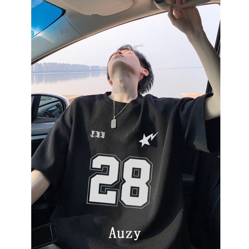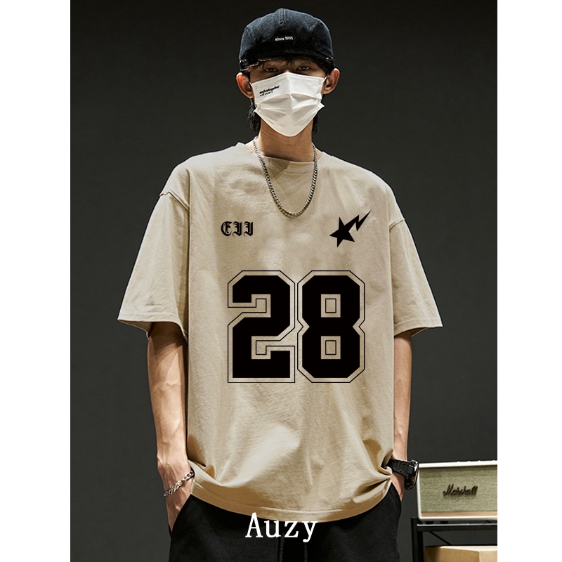 AUZY No. 28 baju seragam Gaya Amerika Retro Kaos Distro Pria Original 100 PERSEN Lengan Pendek Oversize T-Shirt Baju Skena 8.27