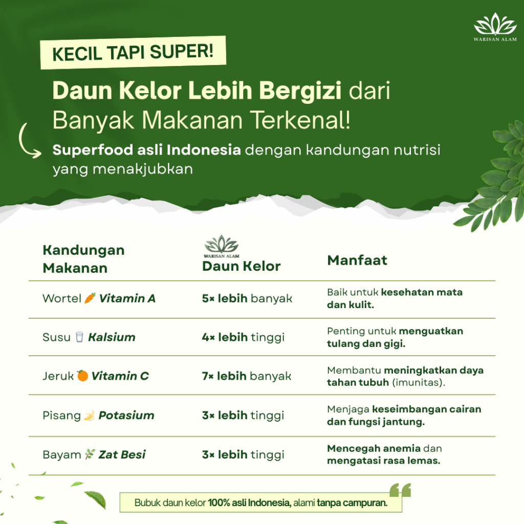 Warisan Alam Daun Kelor Bubuk 100 Gram Premium Pure Organic