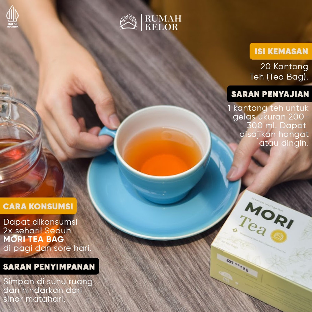 RUMAH KELOR - MORI TEA BAG PREMIUM - Minuman Teh Celup Daun Kelor dan Teh Hijau - 100% Organik - Anti Hipertensi