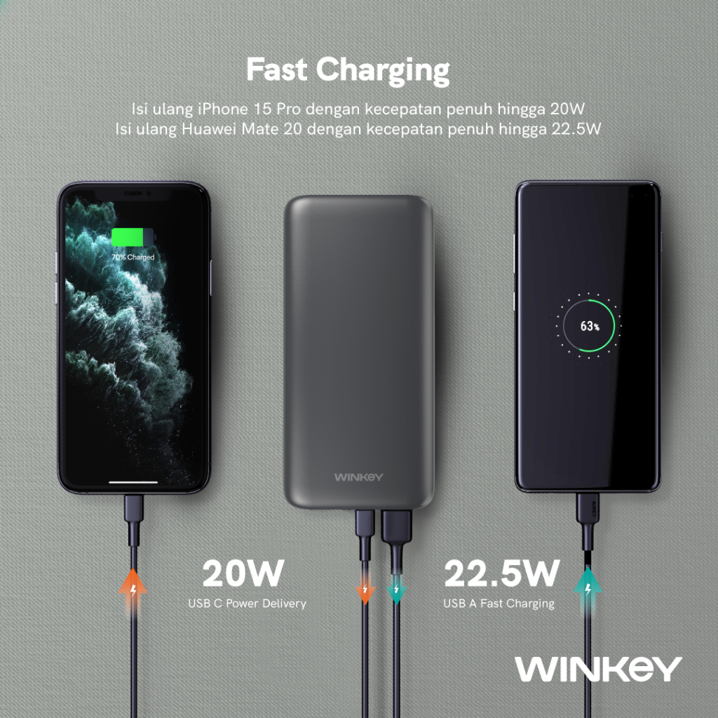 WINKEY Powerbank Armor Lite 10000mAh 2 Port Fast Charging PD 20W QC 22.5W