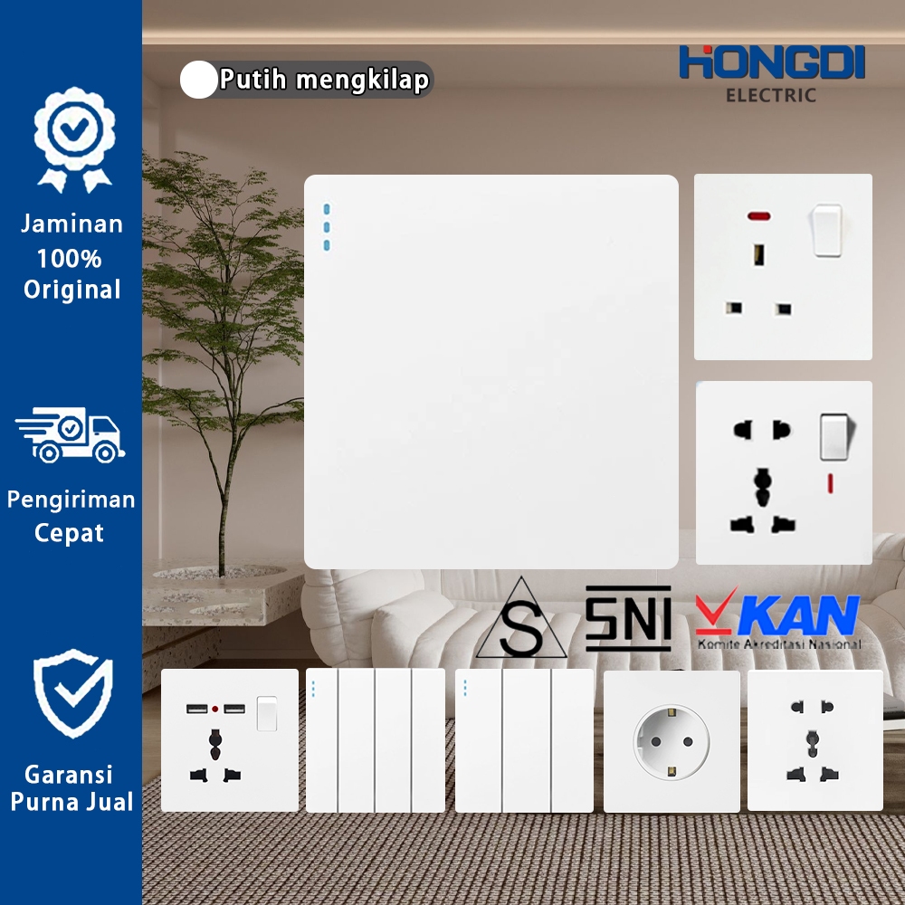1 Gang 1 Arah, 1 Gang 2 Arah, 2 Gang 1 Arah, 2 Gang 2 Arah, 3 Gang 1 Arah, 3 Gang 2 Arah, 4 Gang 1 Arah, 4 Gang 2 Arah, Stop Kontak, Computer, TV, Computer + TV, 1 Gang + 3 Pin + USB, 5 Pin Socket, socket usb type-c, AC, Stop Kontak A+C, dengan sakelar+A+C, SK 5Pin led, EU+2 type-c, Stopkontak Universal, Inbow Putih, Pelat Penutup Kosong, Pengatur Kecepatan, Peredup Cahaya, Saklar Sensor Gerak
