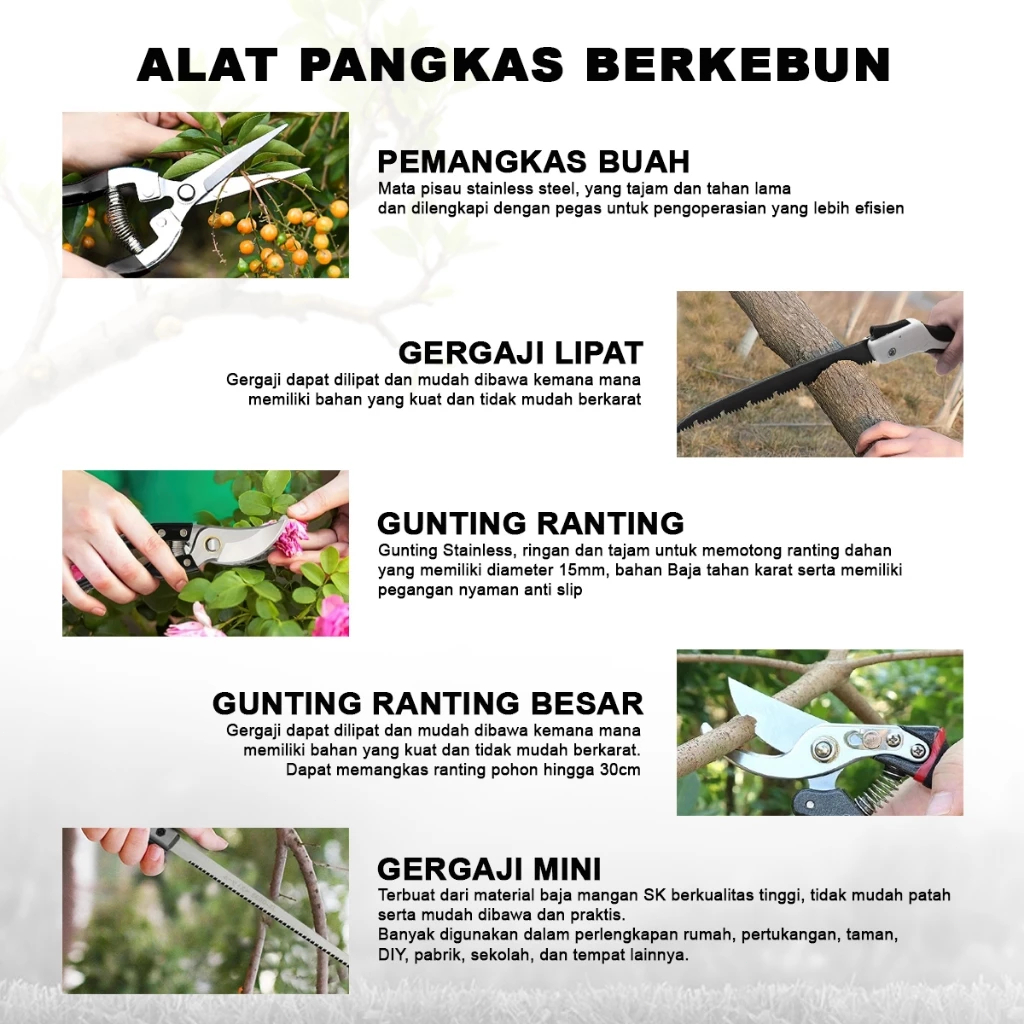 Alat Kebun Pemotong Dahan Ranting Set 5PCS Gunting dan Gergaji Dahan Ranting Batang Garden Set Gunting Kebun & Taman/gun