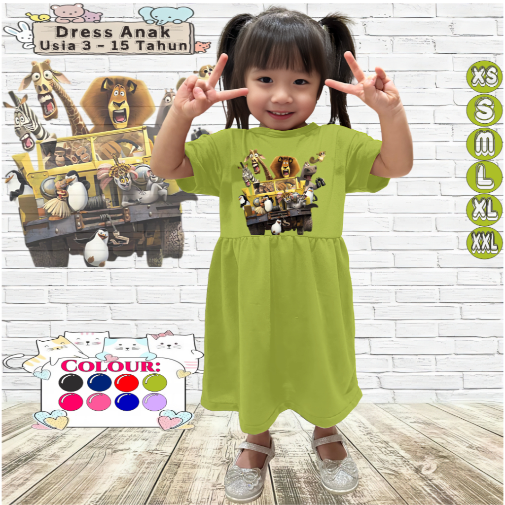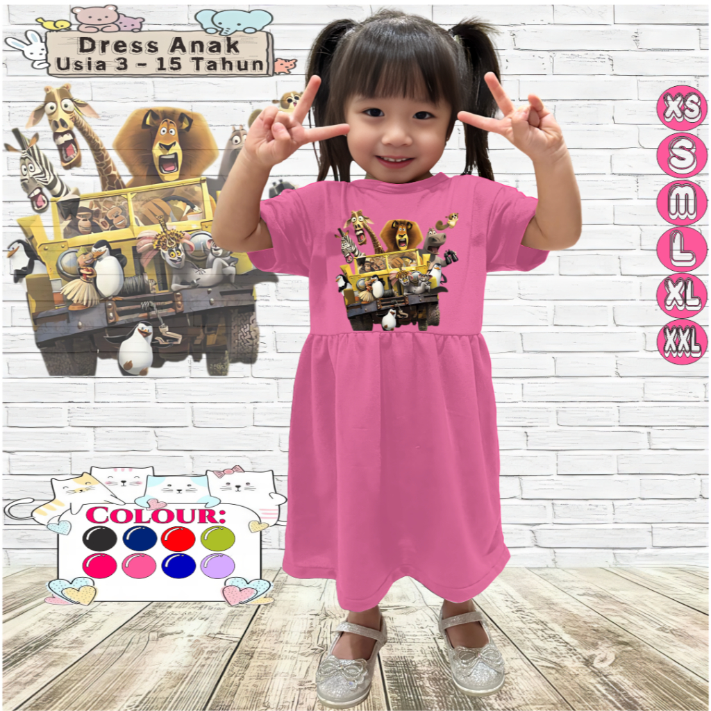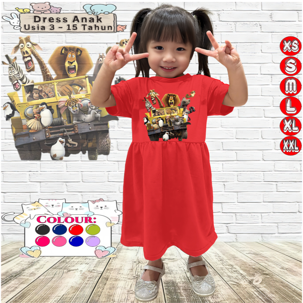 Dress Anak Perempuan 3-15 Tahun Motif MADAGASCAR TEAM