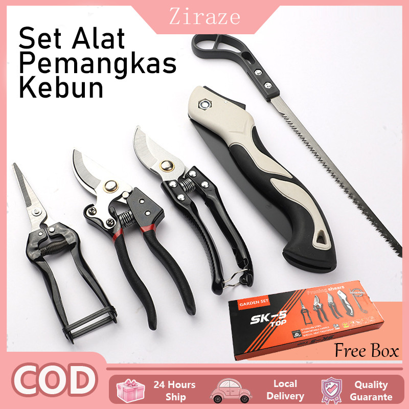 5 PCS Alat Pemangkas Kebun / Set Gunting Dan Gergaji Dahan Ranting Batang Garden / Set Alat Pangkas - Free Box