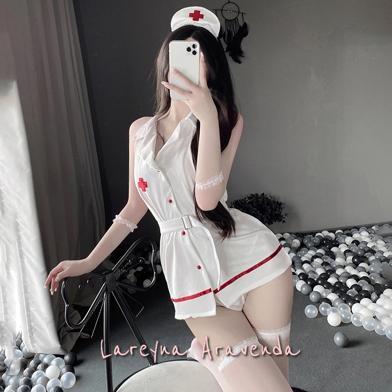 Set Lingerie + CD Fantasy Kostum Kemeja Perawat Sexy LG539