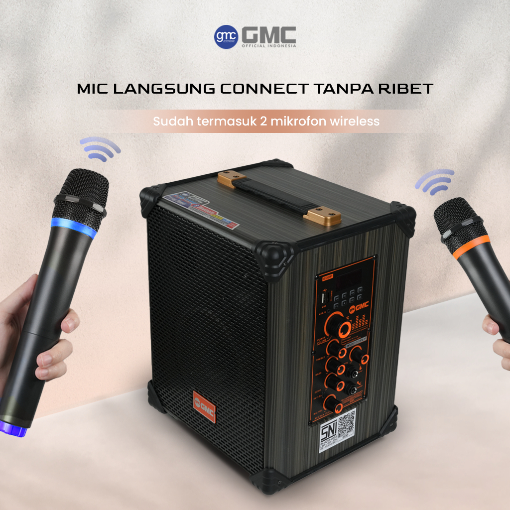 Speaker GMC 899P – Speaker Karaoke Bluetooth 6.5"– 125W, 2 Mic Wireless UHF, USB, SD, AV In, RadioFM - Garansi Resmi 1 T
