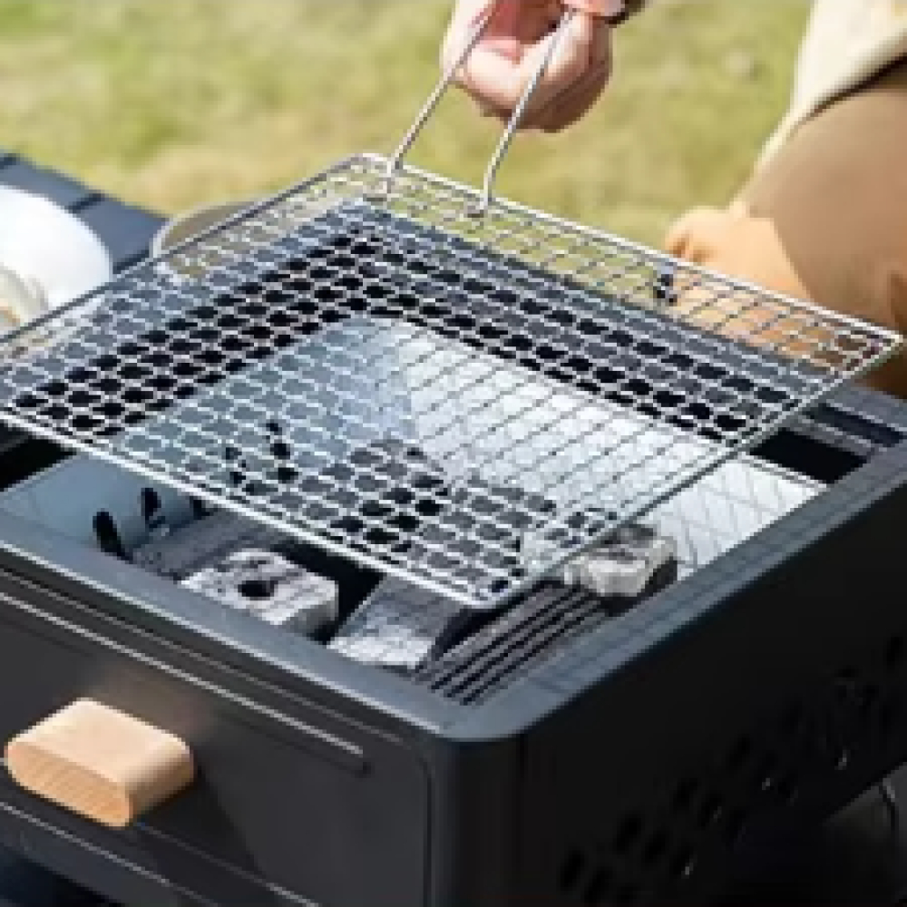 Panggangan Arang Alat Panggang Portable BBQ Sate Ikan Sosis Ayam Outdoor Grill Besi Stainless Steel Anti Lengket Desain