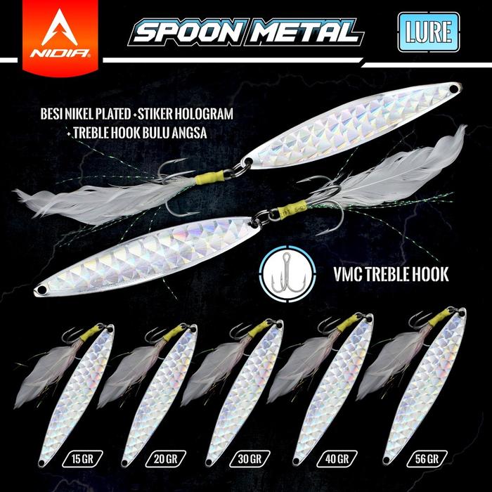 WAJIB PUNYA ! NIDIA SPOON METAL LURE BCS PLUS TREBLE HOOK UMPAN CASTING IKAN PANCING - 15GR ORI