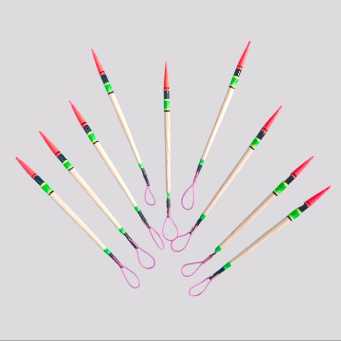 WAJIB PUNYA ! PELAMPUNG PANCING JARUM IKAN MAS UKURAN 8 CM ISI 5 KUKUMBUL KAYU OTOMATIS - UJUNG MERAH MOTIF API ORI