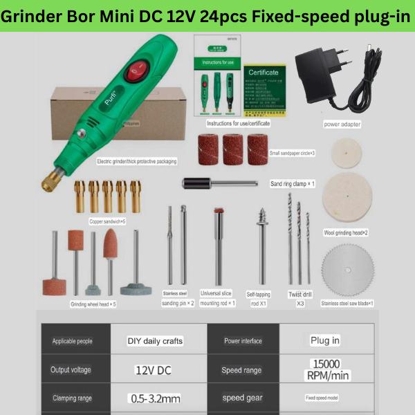 DIJAMIN ORI ! GERENDER BOR MINI LISTRIK DC 24PCS 12V DC 15000 RPM MINI DRILL ELECTRIC ENGRAVER GRINDER KAYU LARIS