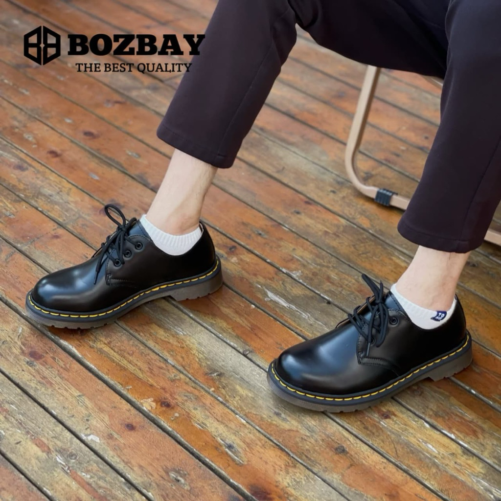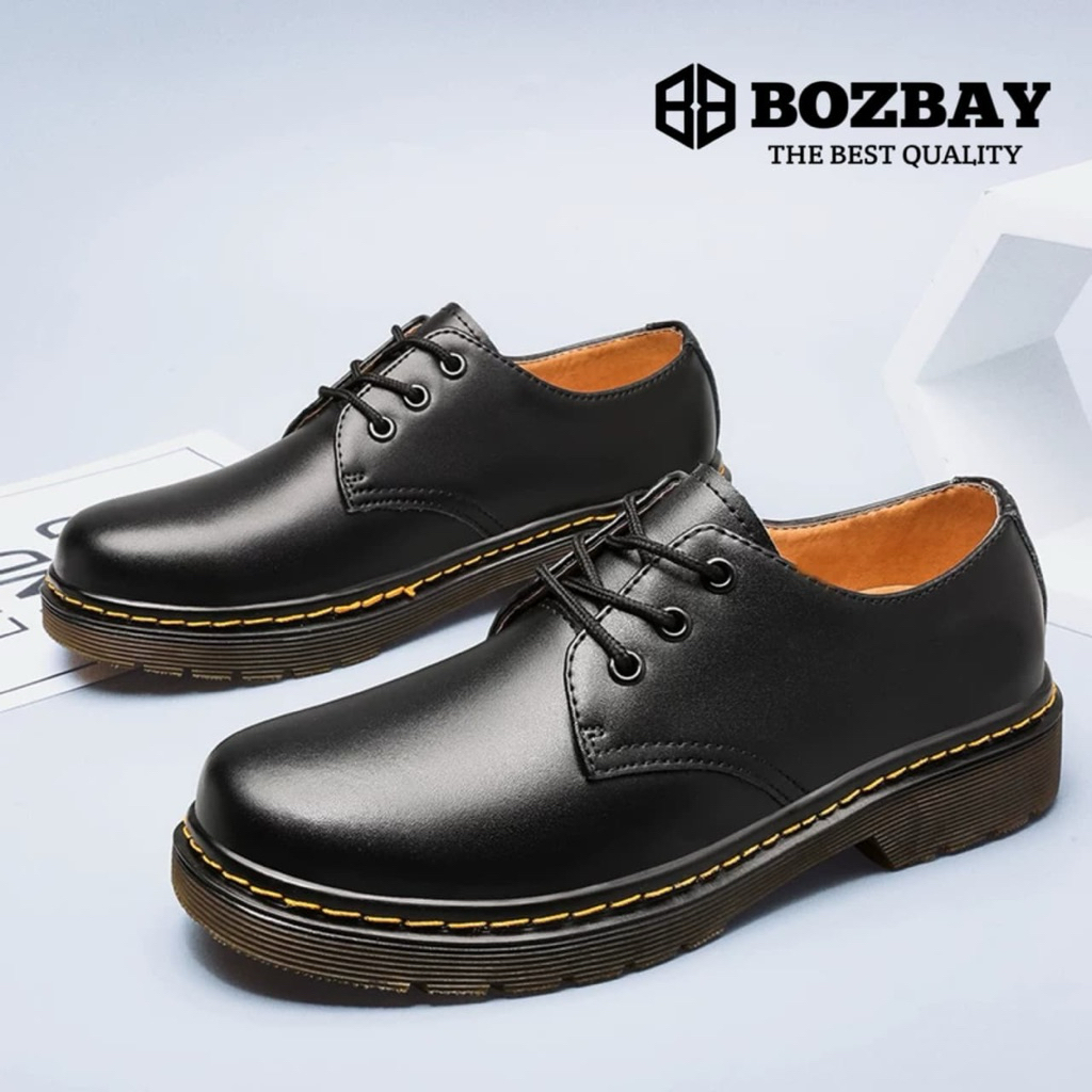BOZBAY Sepatu Docmart Cowok Sepatu Formal Kerja Kasual Sepatu Nikahan Sepatu Kantor Hitam