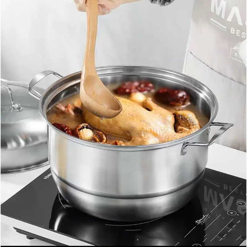 Panci Kukus Siomay Dimsum Bakpao Nasi Tim Steamer Dandang Stainless Steel Susun 3 Ukuran 28cm