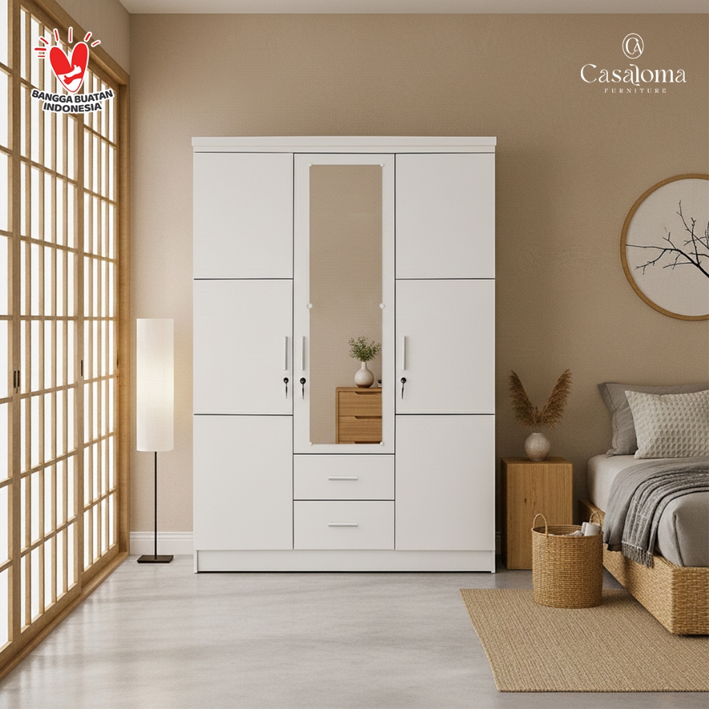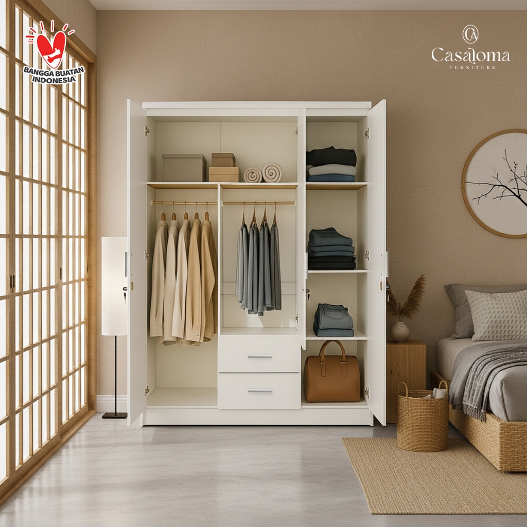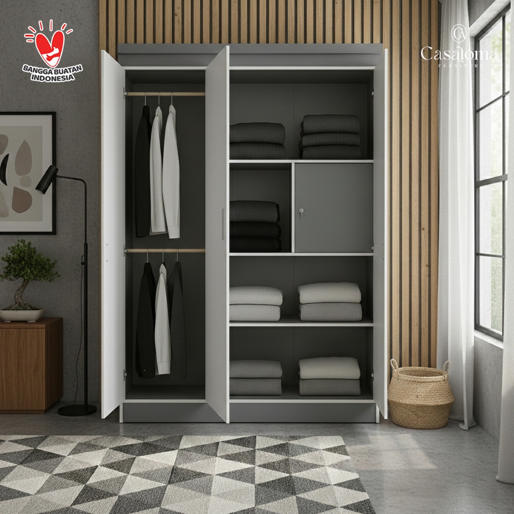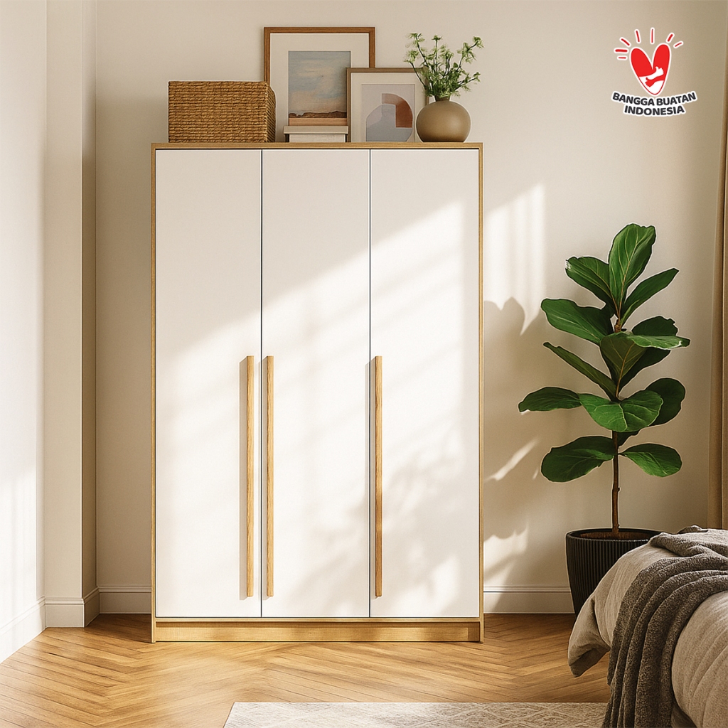Casaloma Furniture Lemari Pakaian 3 Pintu Minimalis Murah Japandi Elegan