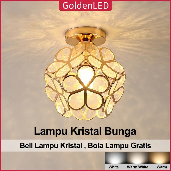 Golden LED Lampu Kristal Bunga Lampu Plafon Simple Minimalis Lampu Gantung Kristal Bulat ceiling lampu Bohlam Gold White