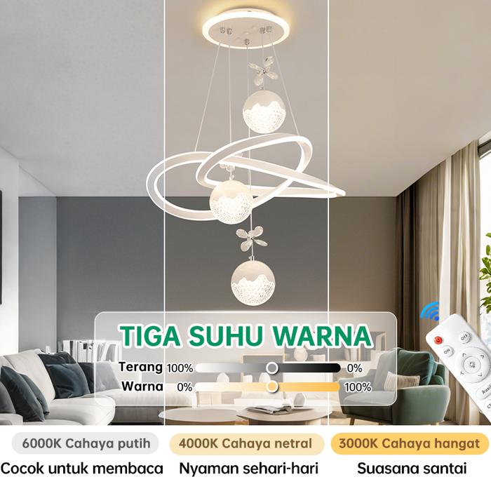 Lampu Gantung Kristal Modern 3Warna 72W LED Lampu Gantung Ruang Tamu Minimalis Kamar Tidur Hias - Putih+Remote