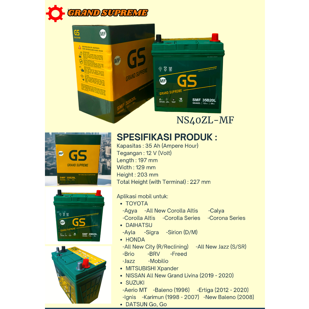 (TIDAK BISA ) AKI MOBIL GS GRAND SUPREME NS40ZL CALYA, SIGRA, BRIO, AYLA, JAZZ