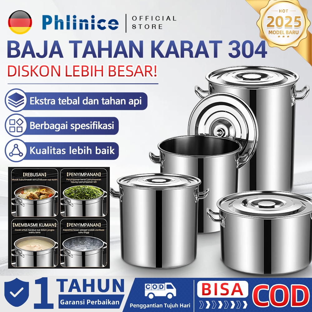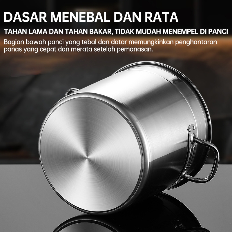 Phlinice Panci Dandang Stainless Steel Tebal Panci Bakso Stockpot Panci Kukus Panci Besar 12L/21L/34L/50L
