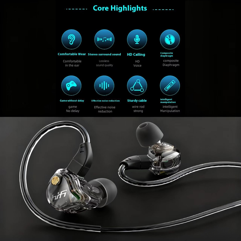 Headset Gaming With Mic Telinga Gantung 9D Bass Hifi Surround Stereo 3.5mm Earphone Sport