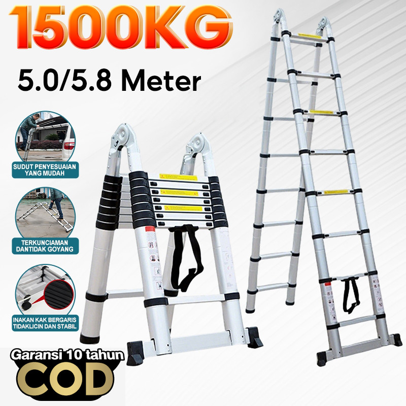 Tangga Lipat Aluminium Tangga Teleskopik Portabel Rumah Tangga Multifungsi Dengan Teknik