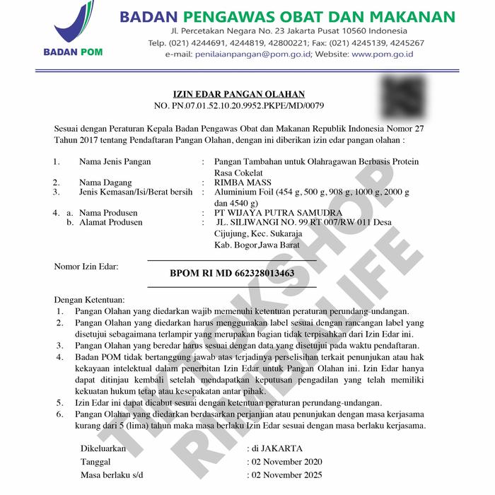 Rimbalife Rimbamass Rimba mass Halal Bpom 5 Lbs 2250gram